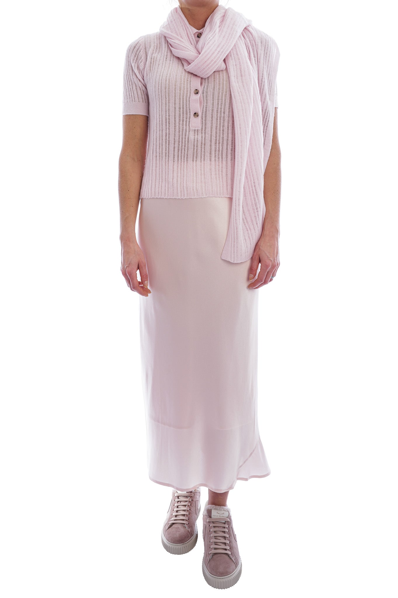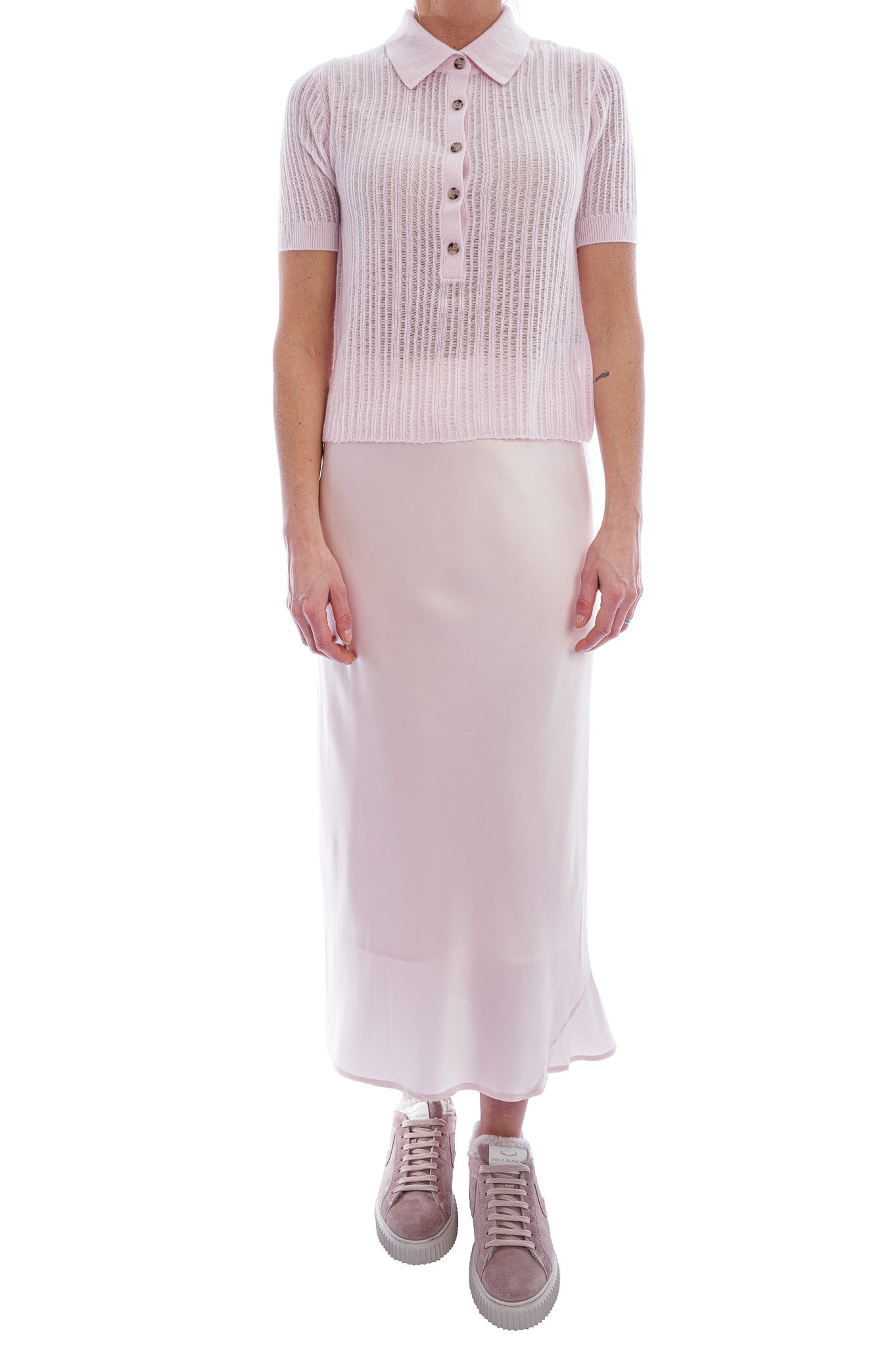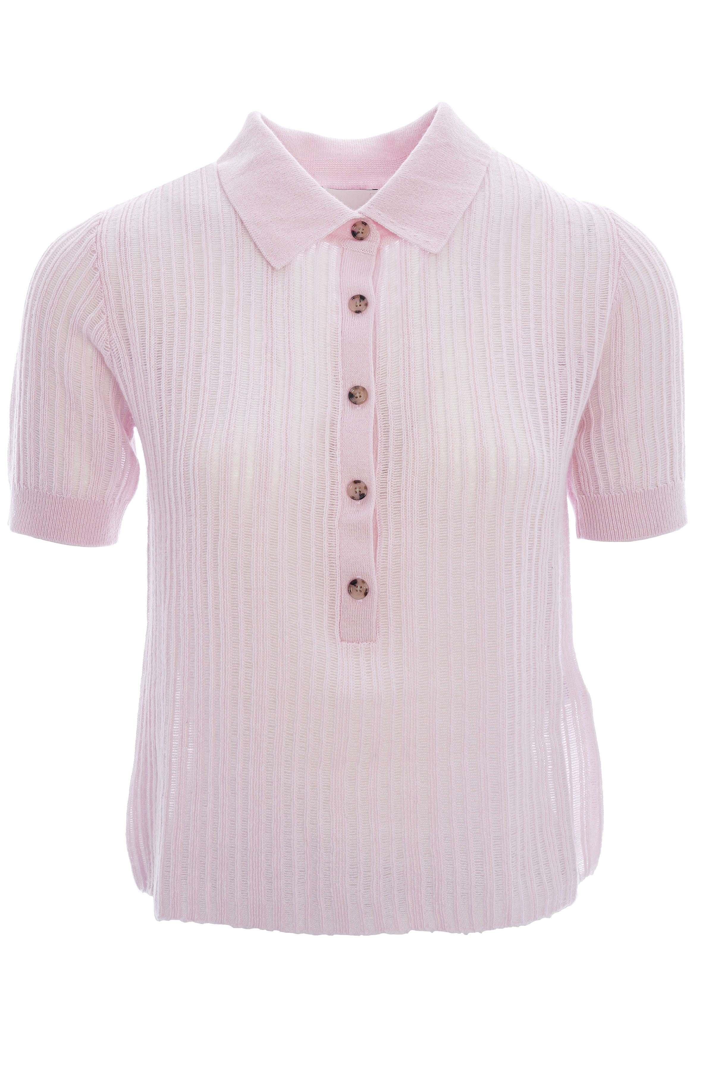 Dieses zart rosafarbene Strickshirt besticht durch seine besondere, fein gerippte Struktur, die dem Modell eine elegante Tiefe und eine leicht transparente, luftige Anmutung verleiht. Der klassische Polokragen, die Knopfleiste mit edlen Knöpfen und die sanft gerippten Abschlüsse an Ärmeln und Saum runden den Look mit einem hochwertigen, modernen Finish ab.