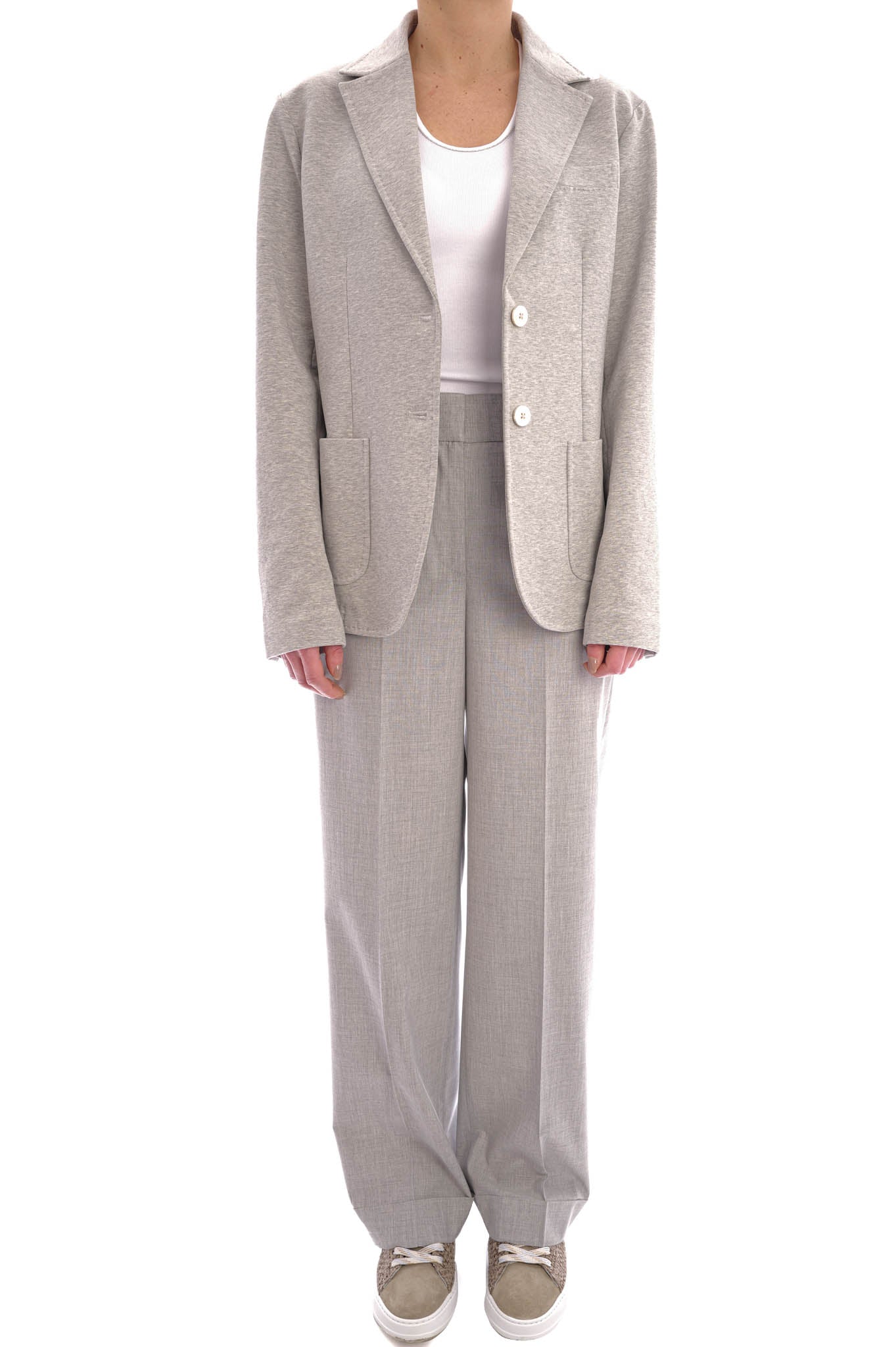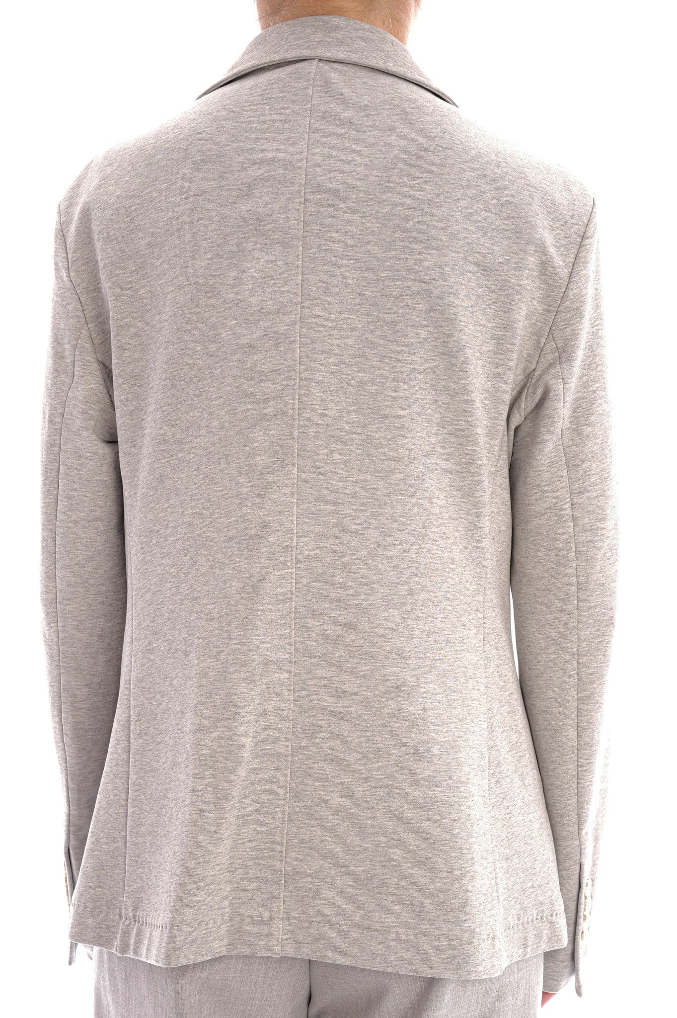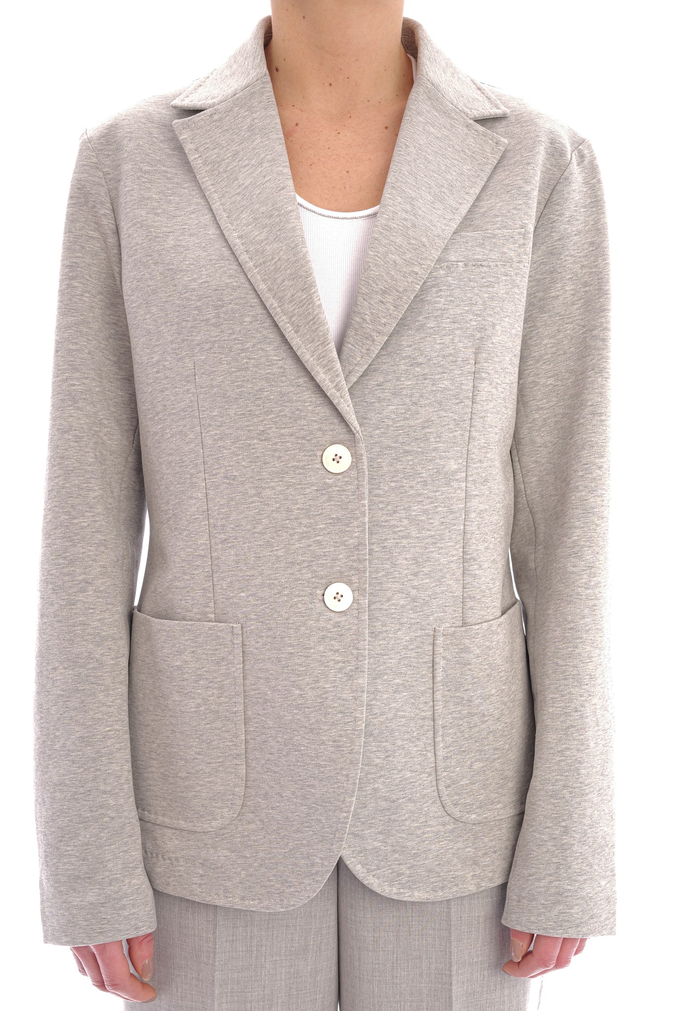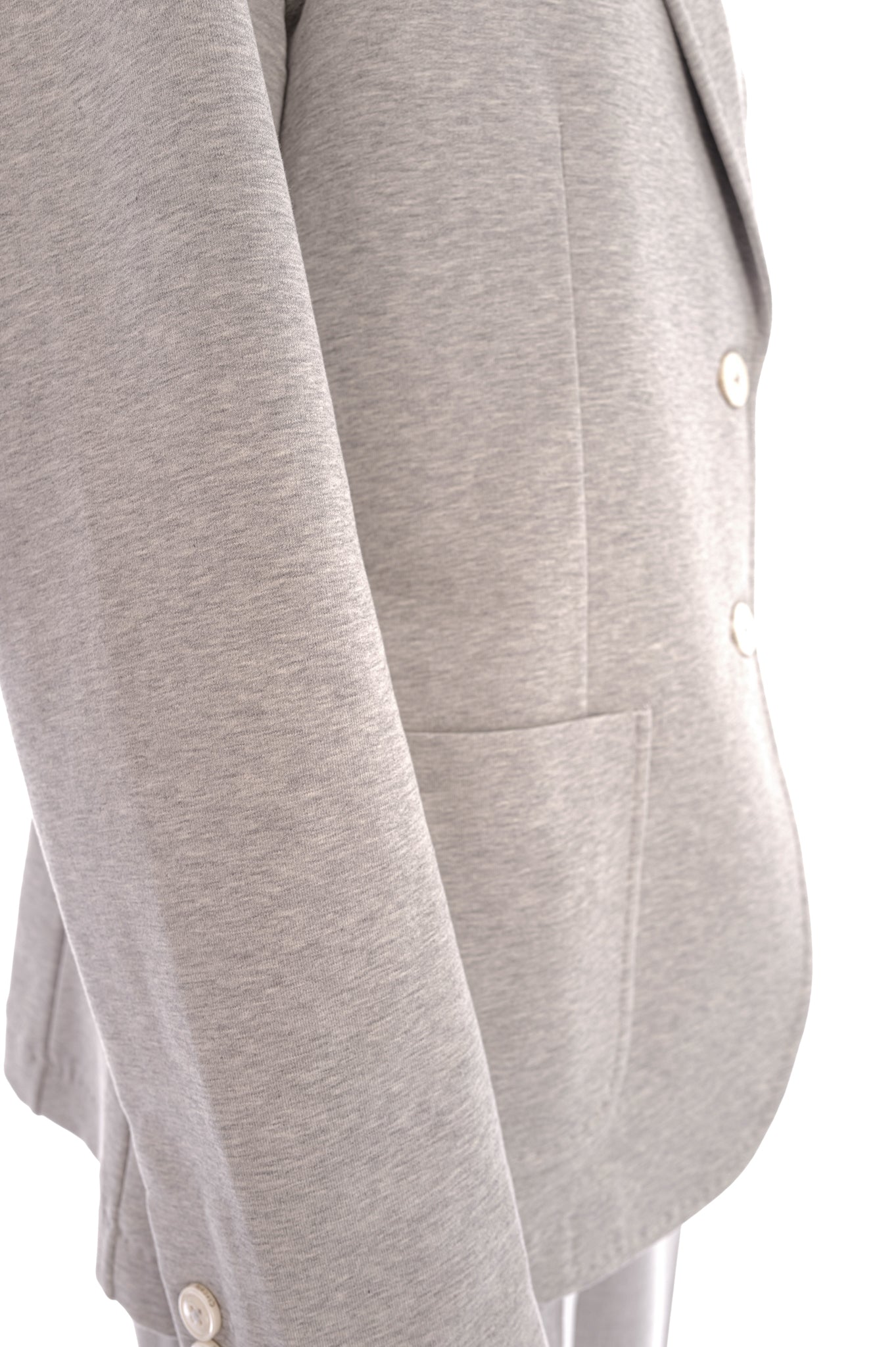 Dieser graue Blazer ist mit einem klassischen Reverskragen und einem Zwei-Knopf-Verschluss ausgestattet. Er verfügt über geknöpfte Manschetten und zwei aufgesetzte Taschen, die dem Blazer ein elegantes Aussehen verleihen.