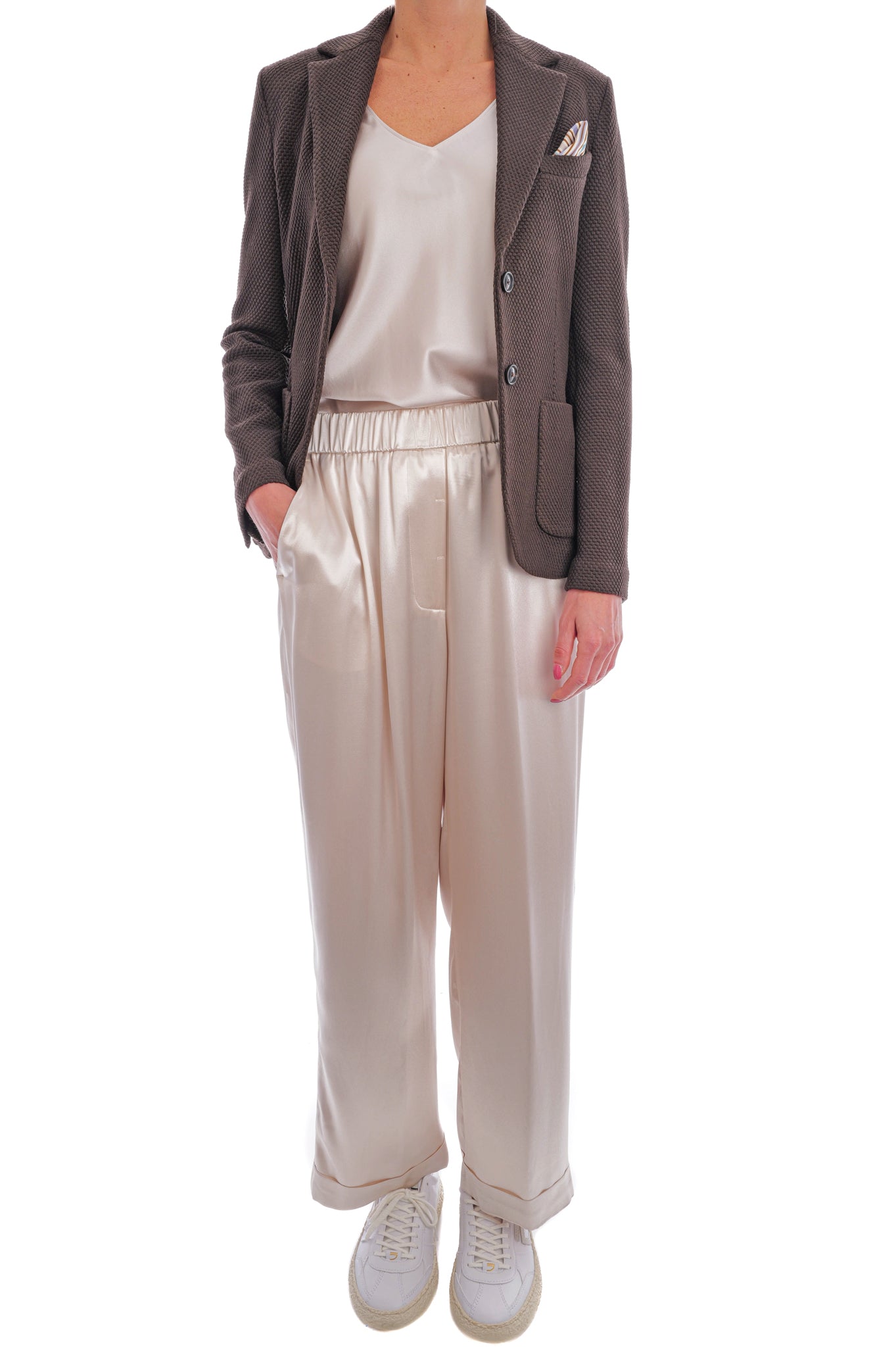 Dieses ungefütterte Modell überzeugt mit einer raffinierten 3D-Strickstruktur aus elastischem Schurwoll-Mix, der angenehmen Tragekomfort garantiert. Die schmale Passform unterstreicht dabei elegant die feminine Silhouette.