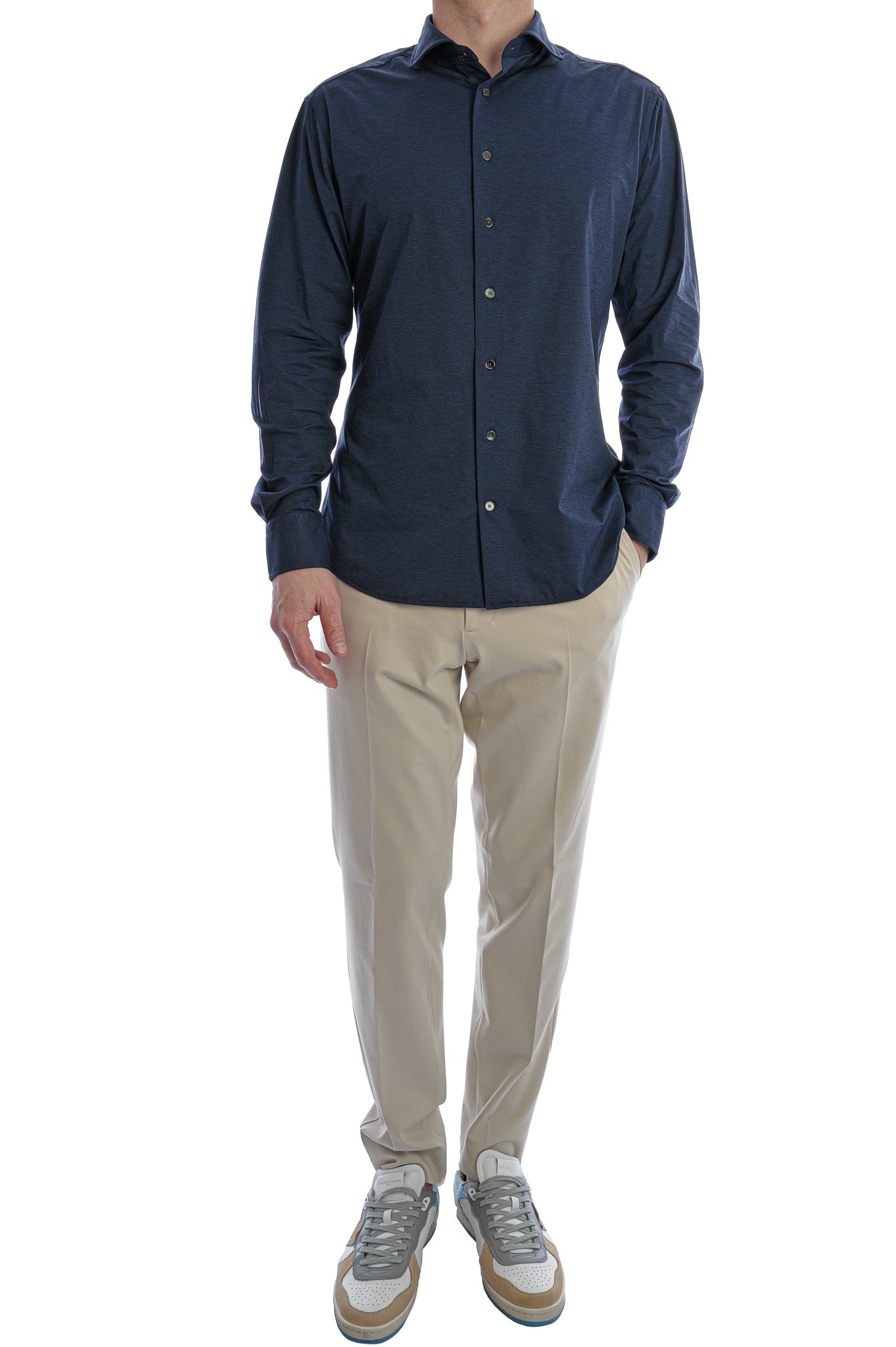 Das Performance-Jerseyhemd Stretch Radical Fit von Traiano in Blau-Melange verbindet zeitlose Eleganz mit moderner Materialqualität. Sein meliertes Finish verleiht dem maskulinen Modell ein frisches, stilvolles Auftreten – ideal für die anspruchsvolle Alltagsgarderobe.