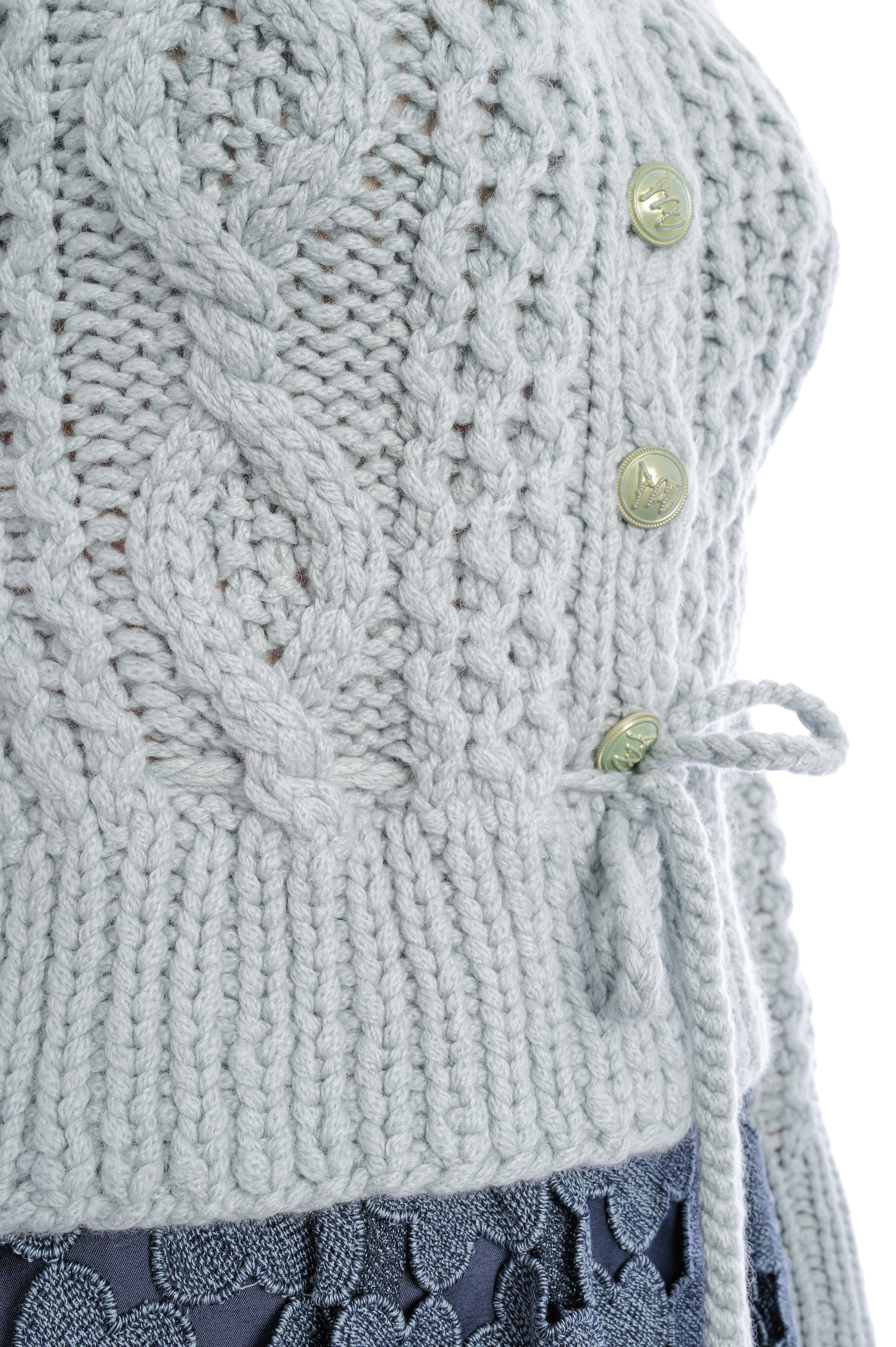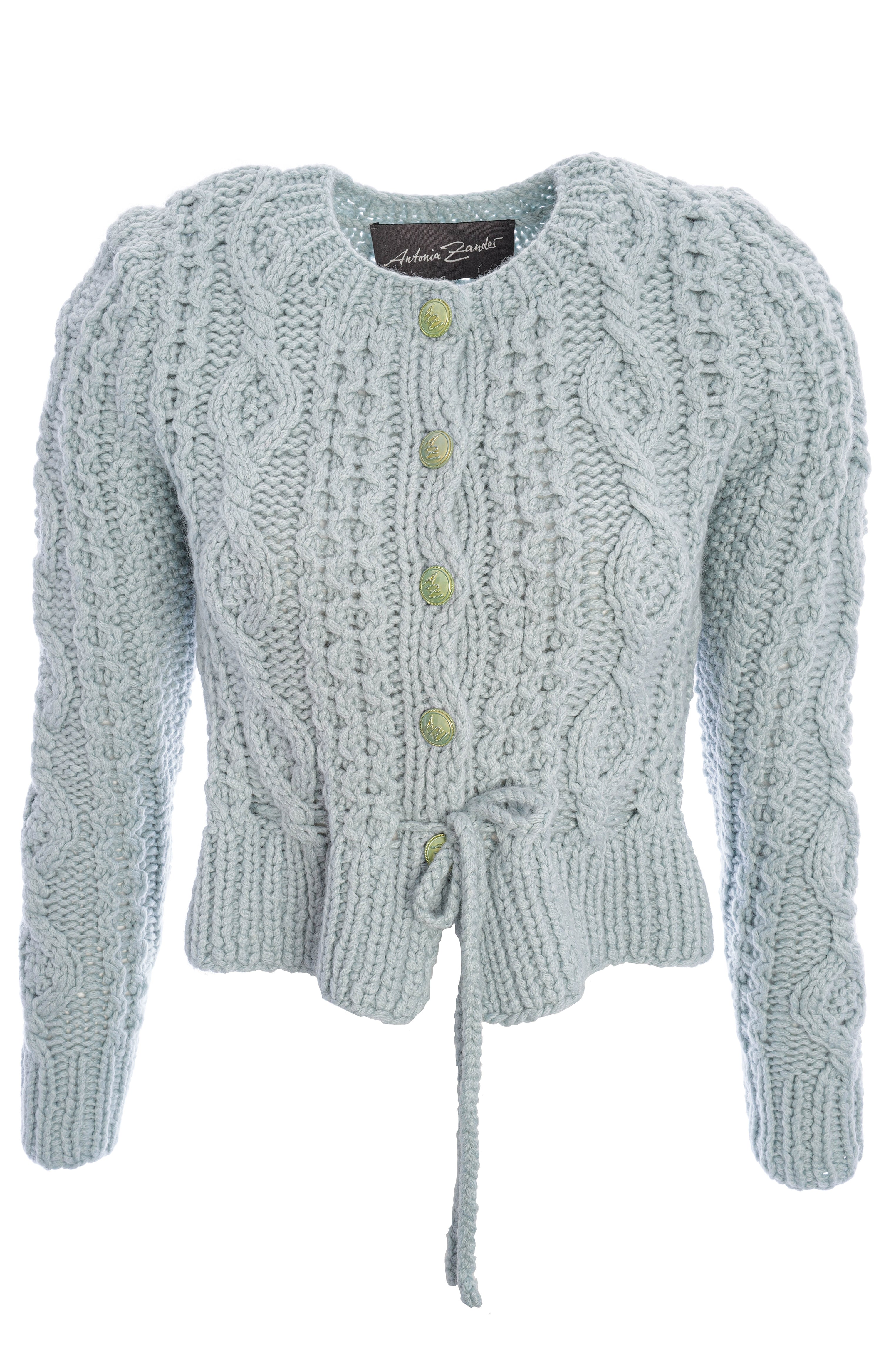 Diese luxuriöse Kaschmirstrickjacke von Antonia Zander begeistert mit einem aufwendig gearbeiteten Zopfmuster, das dem Design eine elegante Struktur und handwerkliche Raffinesse verleiht. Gefertigt aus edlem, besonders weichem Kaschmir, sorgen die klassische Knopfleiste, der runde Ausschnitt und der feine Taillenzug für eine feminine Silhouette und höchsten Tragekomfort.
