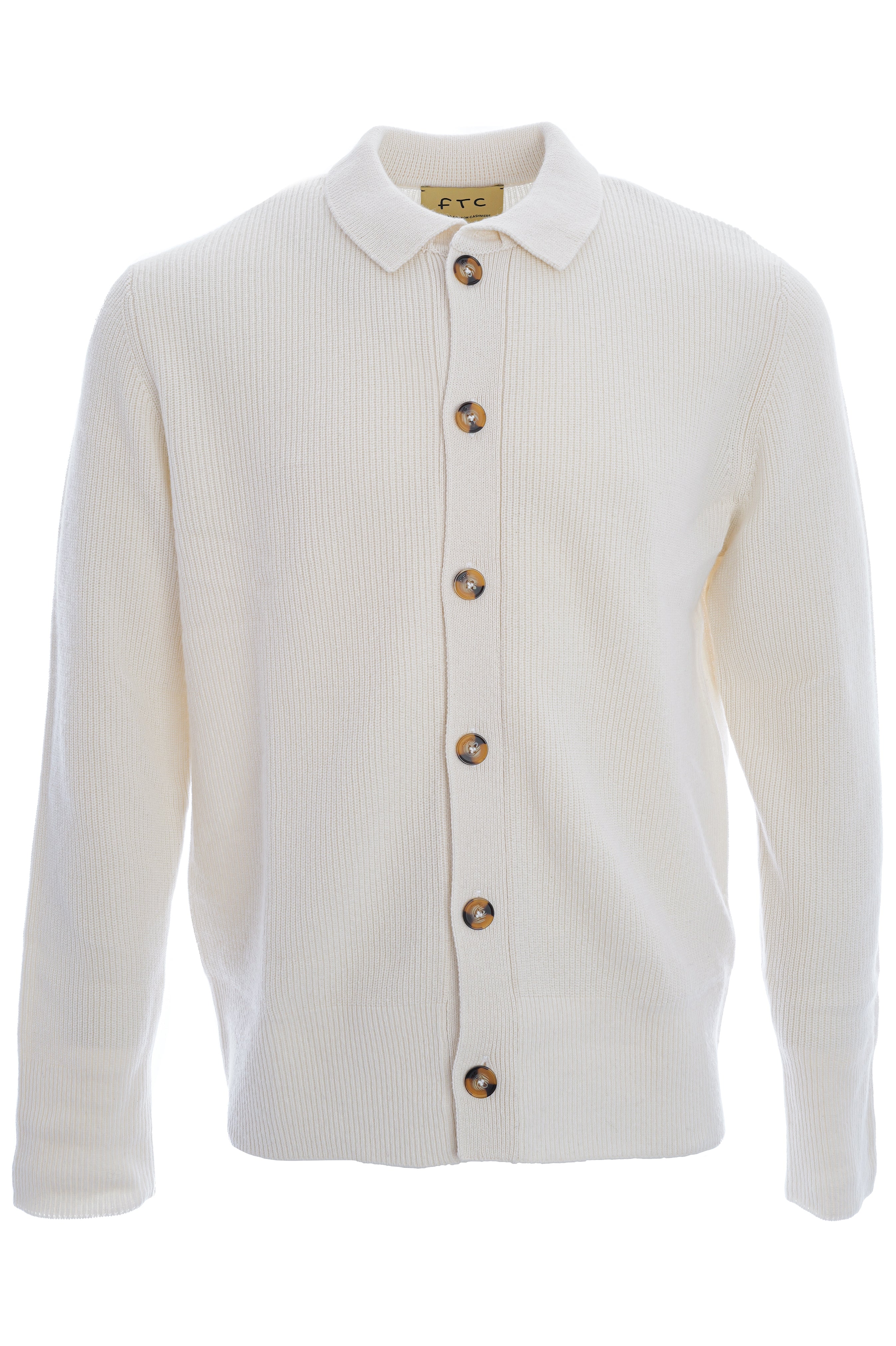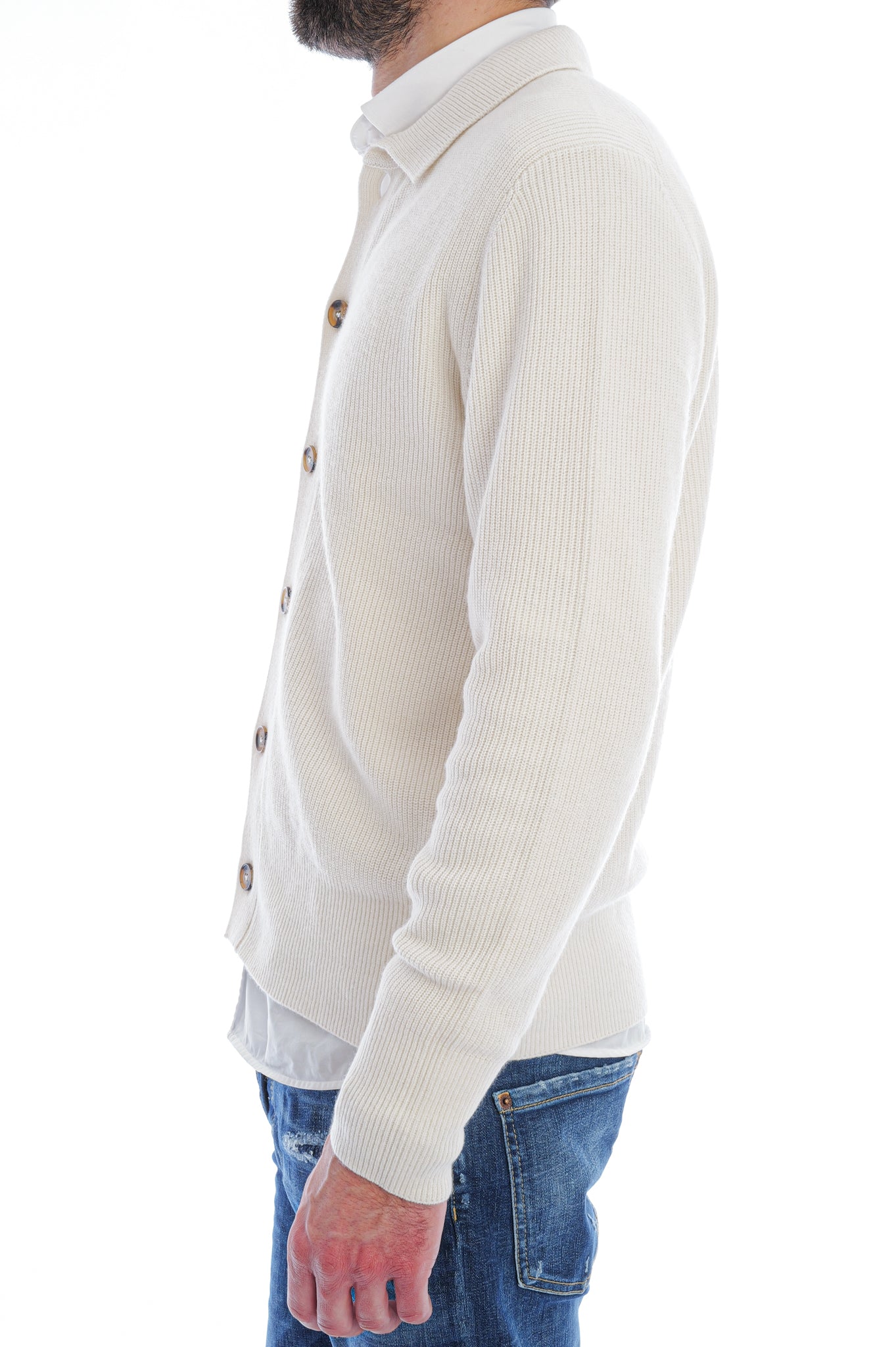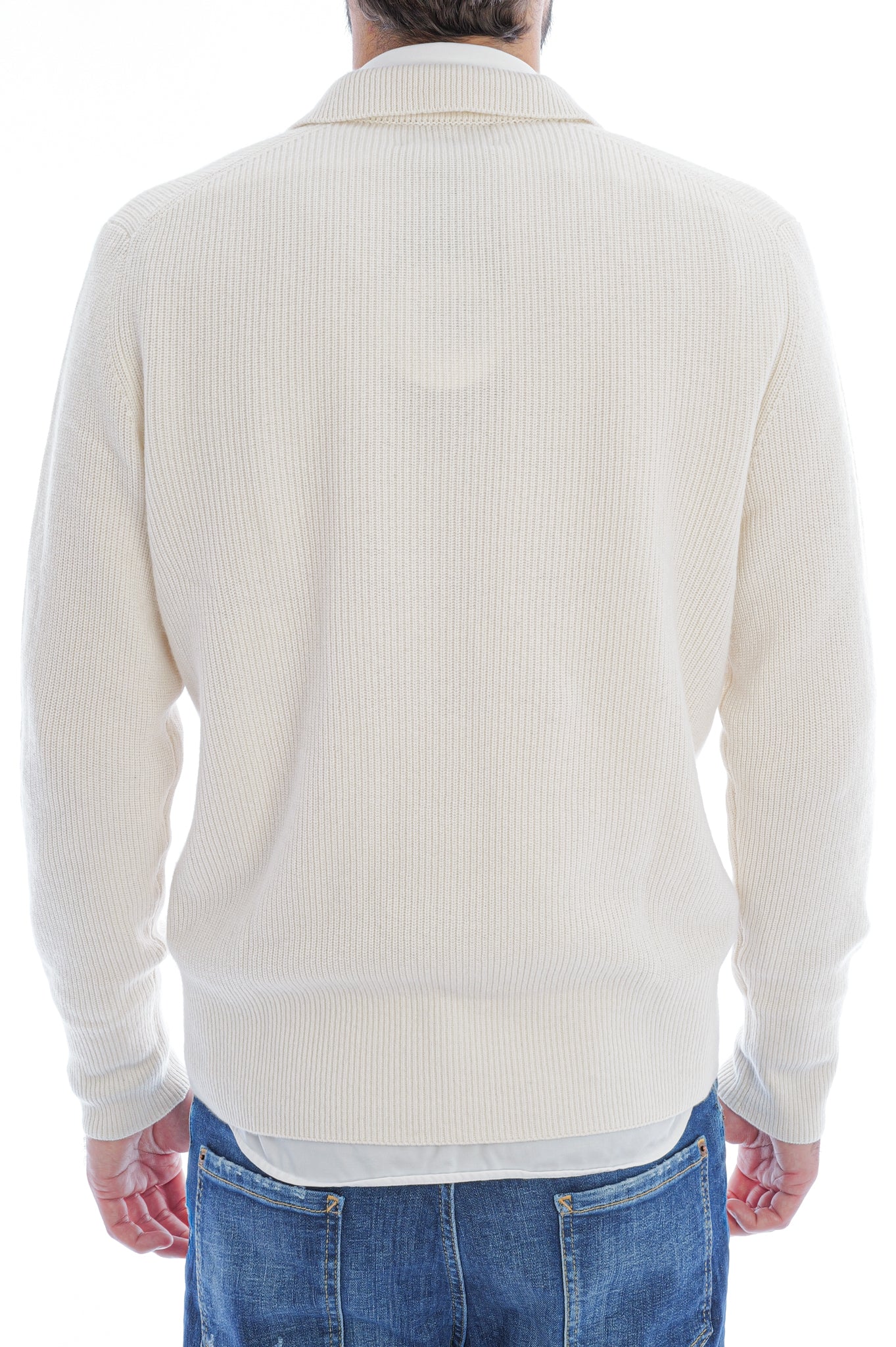 Der Pullover aus Halbpatentstrick bietet eine markante Struktur, lange Ärmel mit gerippten Abschlüssen und einen Hemdkragen für eine klare, angezogene Optik. Gerippter Saum und durchgehende Knopfleiste mit klaren Nahtverläufen sorgen für definierte Form und sauberen Look.