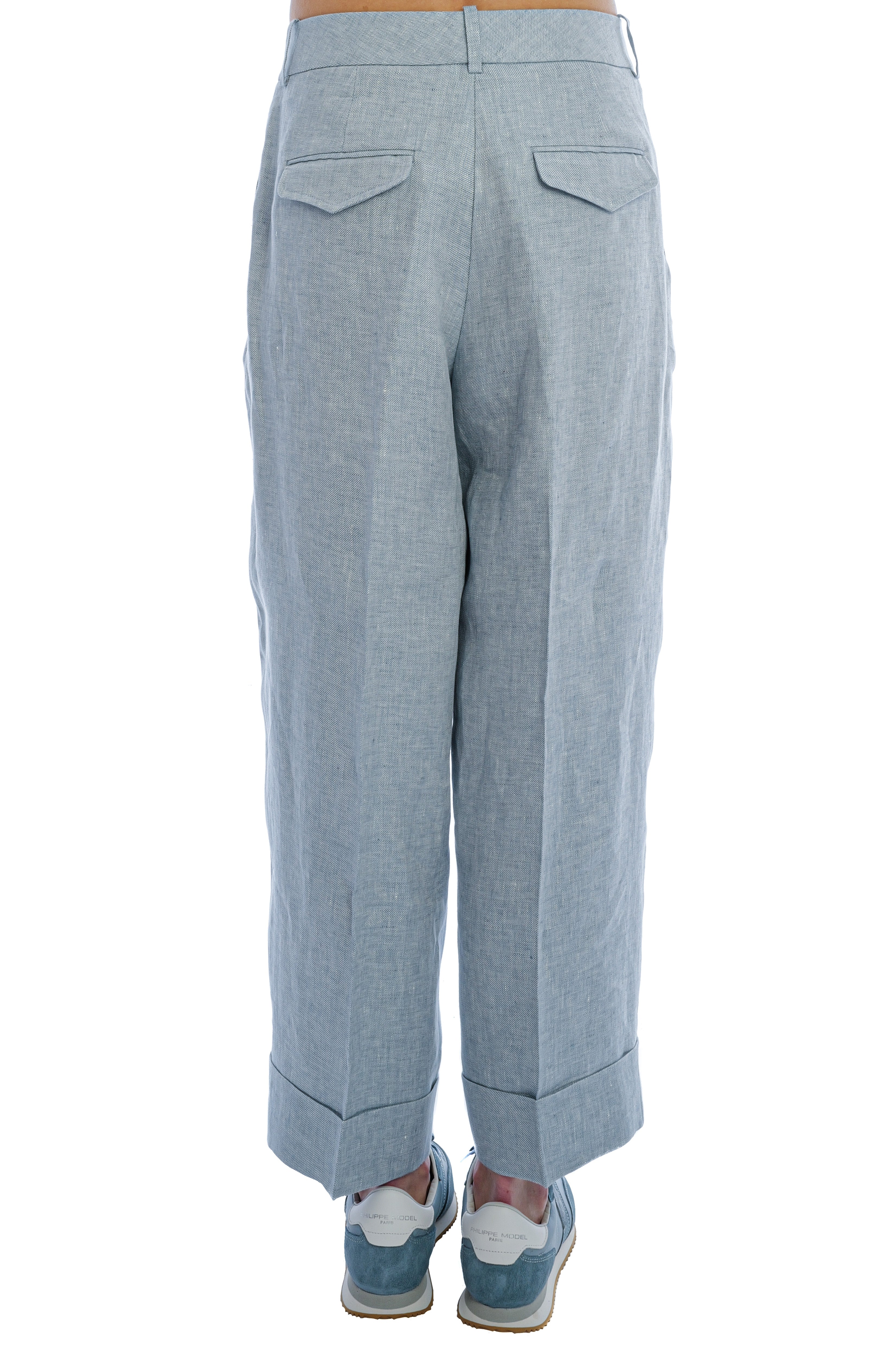 Die Cropped Wide-Leg-Hose aus garngefärbtem Leinen-Gabardine vereint leichte Eleganz mit strukturierter Silhouette. Ein Bundfalten-Detail, aufgesetzte Taschen hinten und seitliche Eingrifftaschen sowie der raffinierte Punto-Luce-Akzent runden das hochwertige Design ab. Ein moderner Damen-Hosenklassiker mit lockerem, zeitgemäßem Schnitt für stilvolle Sommer-Looks.