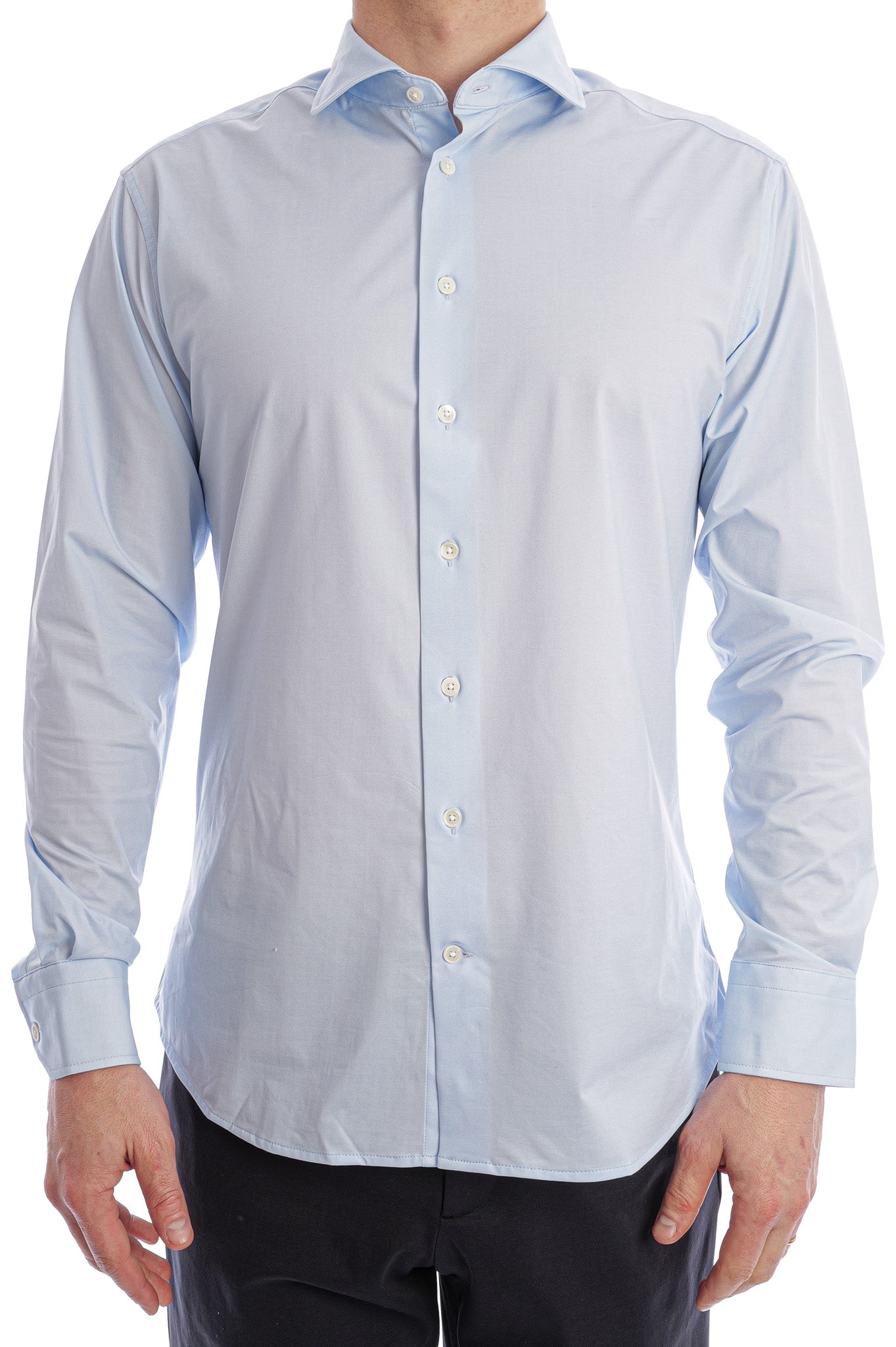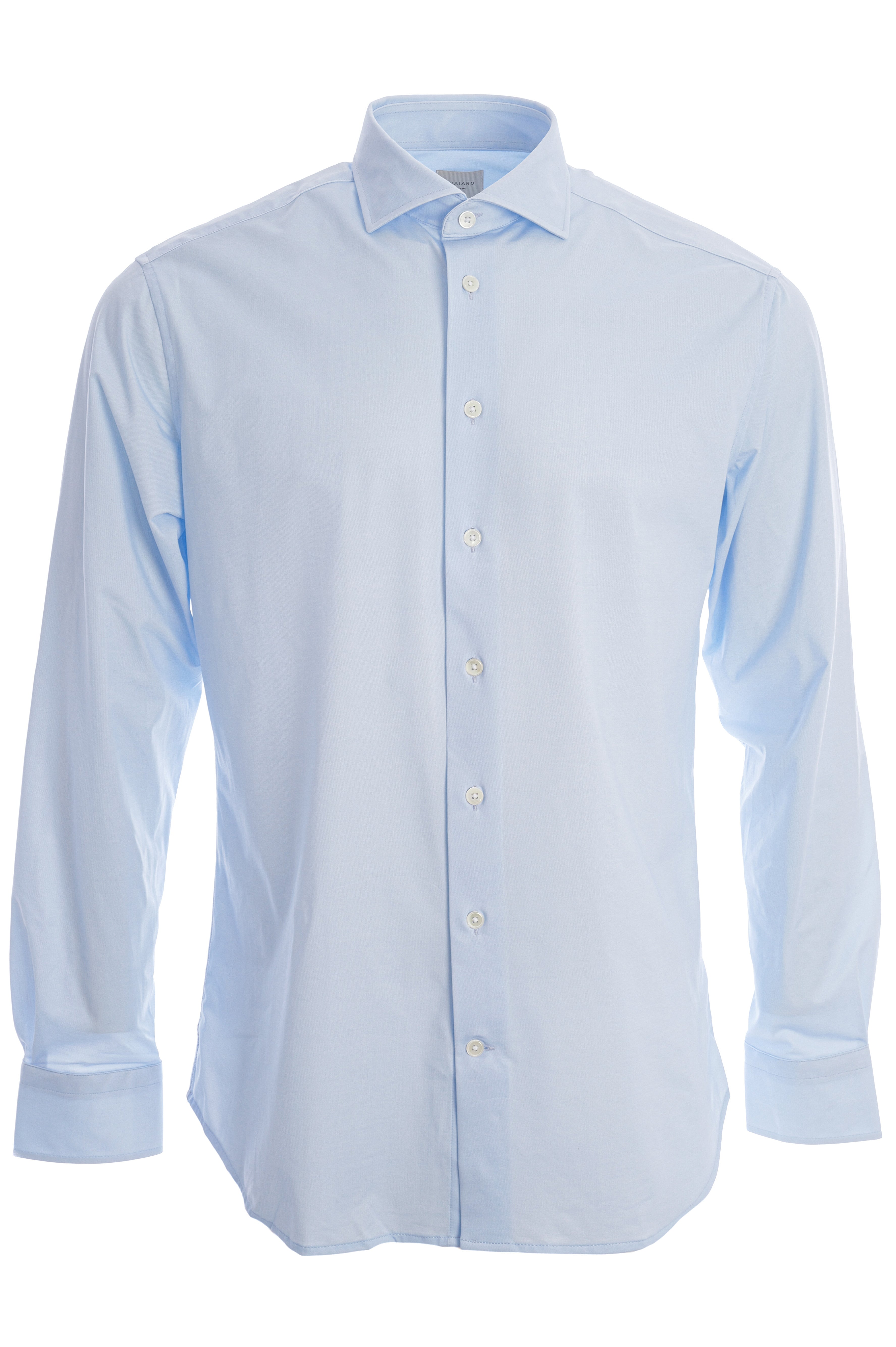 Das Performance-Jerseyhemd Stretch Radical Fit von Traiano in Hellblau, Made in Italy, überzeugt als tailliertes Modell mit cleanem Design – ideal für Casual- und Business-Looks. Semitransparente, elastische Materialqualität sorgt für einen modernen, maskulinen Touch und höchsten Tragekomfort.