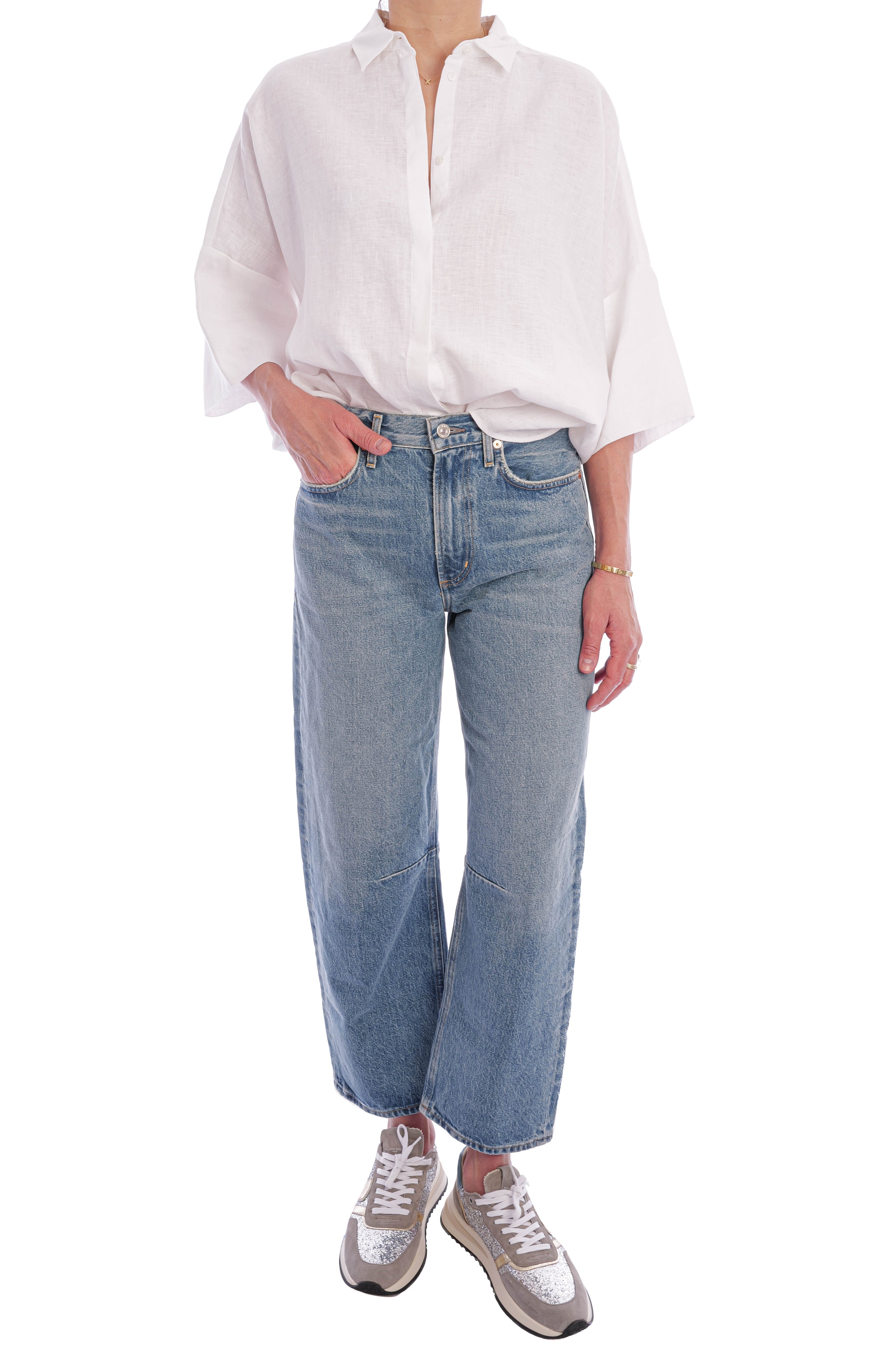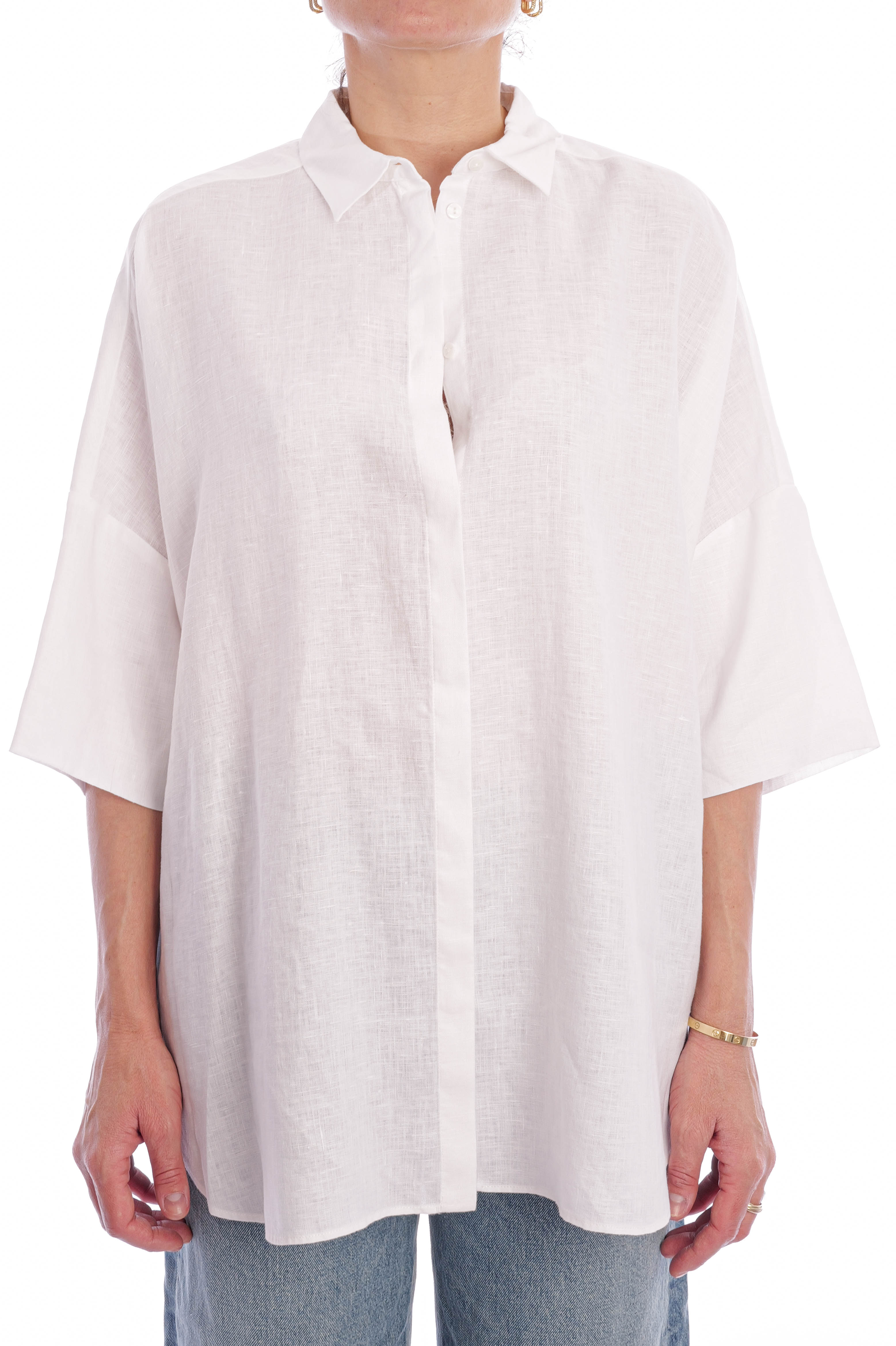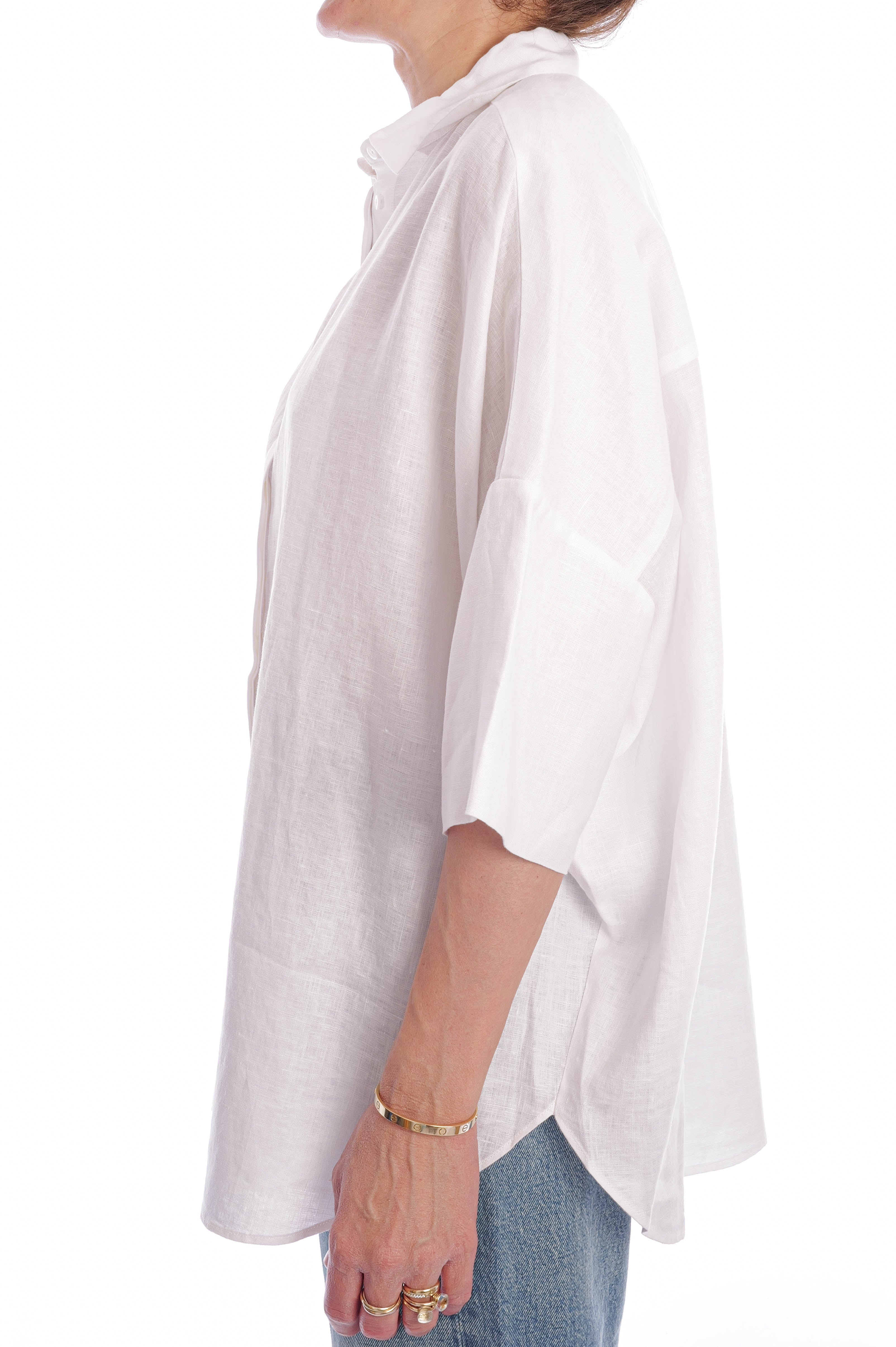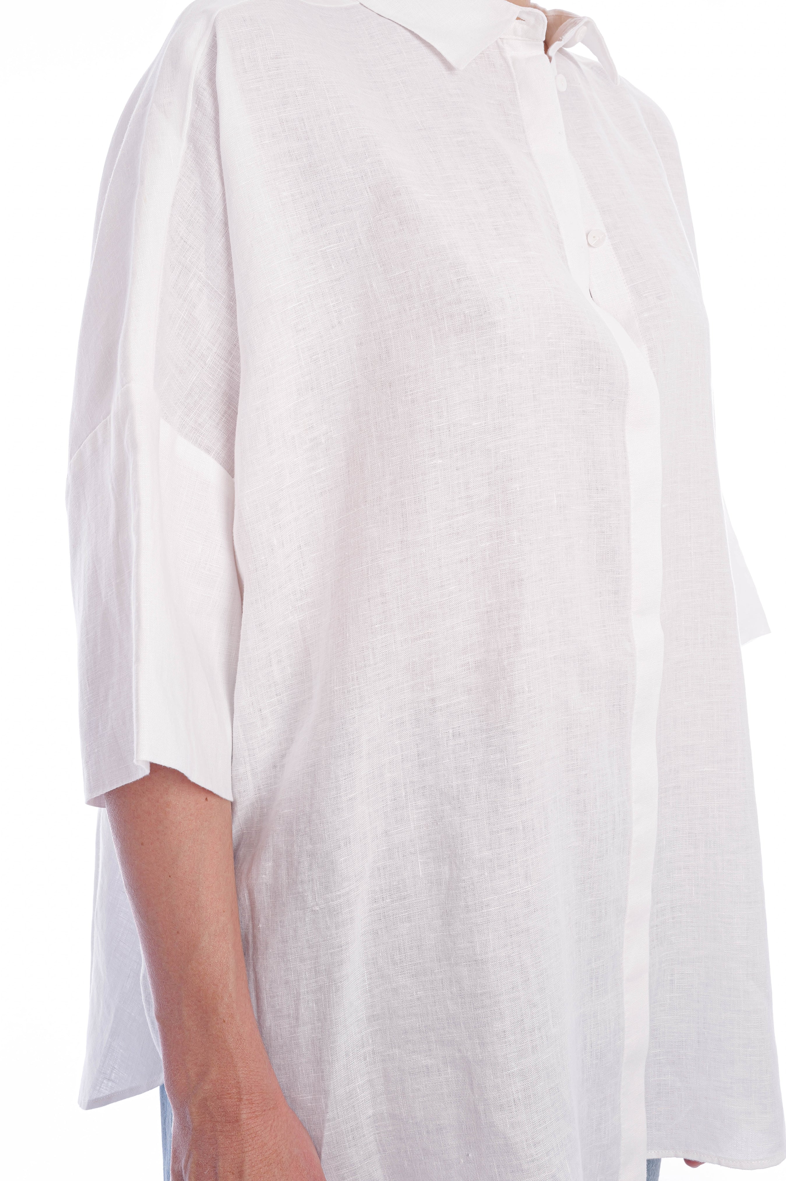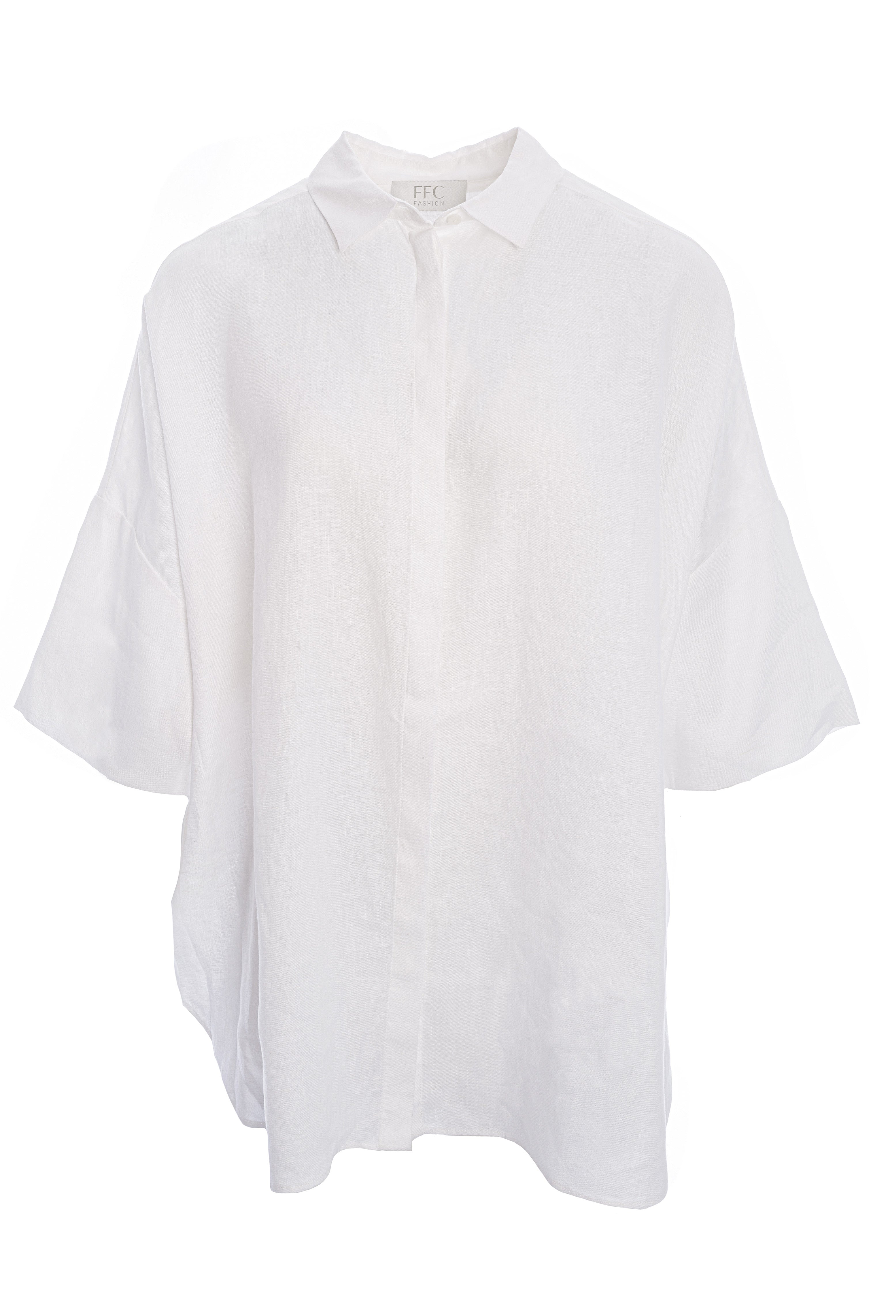 Diese exklusive Leinenbluse für Damen überzeugt mit ihrem modernen Oversize-Schnitt, einer edlen, verdeckten Knopfleiste und luftig-weiten Ärmeln – perfekt für einen stilvollen Sommer-Look in zeitlosem Weiß. Gefertigt aus hochwertigem, atmungsaktivem Premium-Leinen bietet die weiße Bluse höchsten Tragekomfort und ist die ideale Wahl für elegante Casual-Outfits, Business-Looks oder minimalistische Capsule Wardrobes.