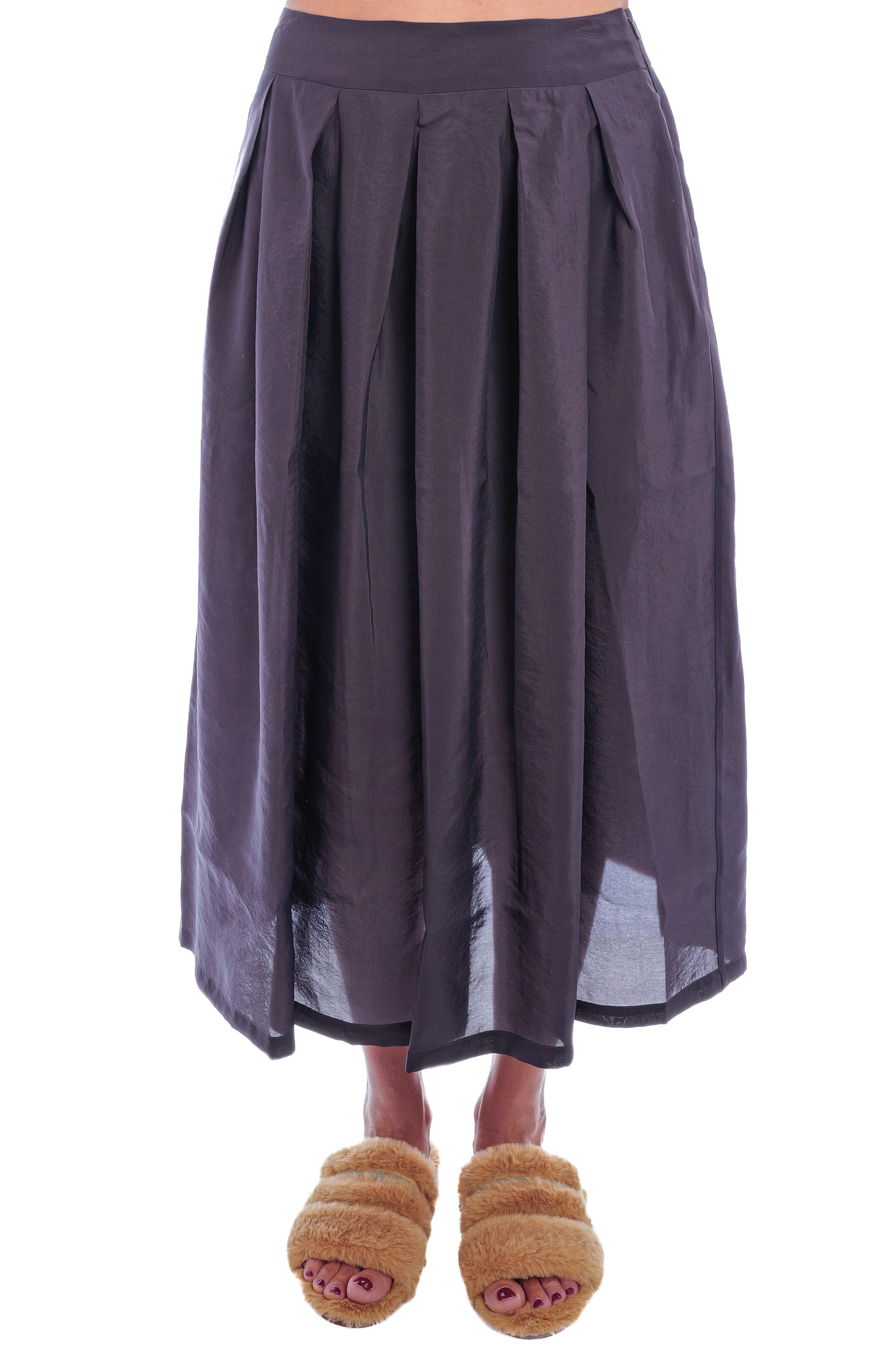 Erleben Sie die elegante Ausstrahlung des Kylie-Rocks, dessen Midi-Länge und A-Linien-Schnitt für eine feminine Silhouette sorgen. Die auffälligen Kellerfalten verleihen ihm zusätzlichen Schwung und Bewegung.